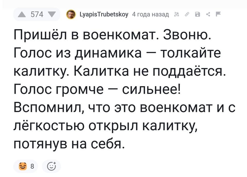 — Я же приказал размести все лужи на плацу, чтобы офицеры по дороге не мочились.