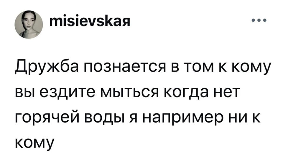 Дружба у взрослых людей — это когда два человека постоянно повторяют: «О! Сто лет не виделись! Нужно чаще встречаться!» И так до тех пор, пока один из них не умрёт.