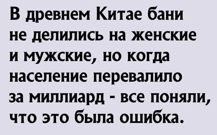 — Блин, если они всё время будут сидеть дома, то таким образом, уже к этому Новому году стоит ожидать прибавления ещё в полмиллиарда китайцев!