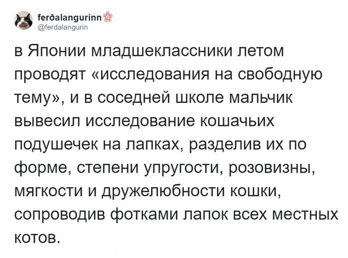 — Что думает ваша кошечка, когда гадит на ковёр в углу за креслом?