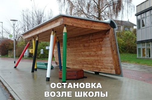— Молодой человек, ну как вам не стыдно! Зачем же вы справляете малую нужду прямо на остановке?