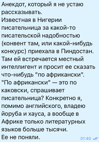 Я, читая Толстого в школе: «А они могут не вставлять через слово свой французский? Хорошо, что в наше время так никто не говорит».