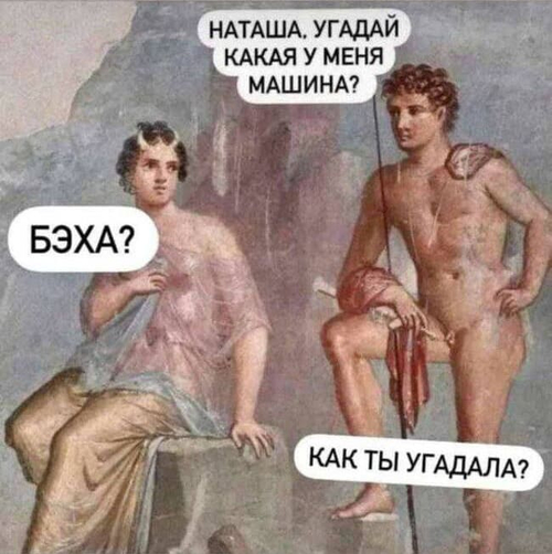 Попросил Дед у Золотой рыбки новое корыто для своей Старухи, однако Старуха решила, что её старенький BMW лучше, чем новый Москвич.