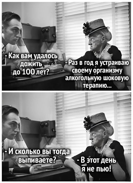 Мне врач рекомендовал пить спиртное только по тем дням, в которых есть буква «С» ... Ну-у это ... среда, суббота ... и ... сегодня!