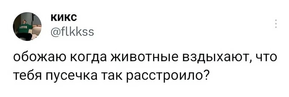 На кассе стоит парень и выкладывает на ленту пять бутылок красного. Четыре бутылки белого. Две розового. Пять шампанского. Одну «Мартини». Два коньяка. Три водки. И в самом конце – шесть пакетиков кошачьего корма. Мужик сзади спрашивает: