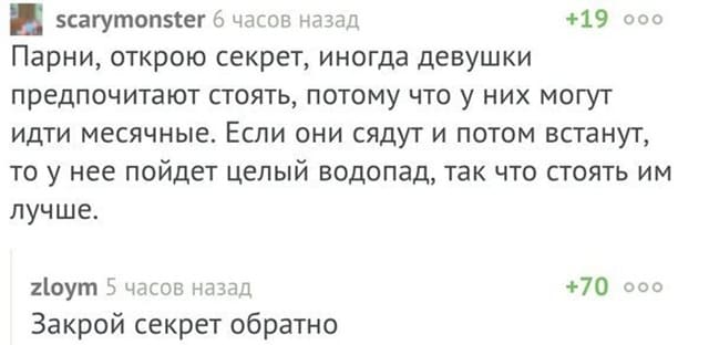 — И то и другое бывает раз в месяц. Если не пришло — значит вас кто-то поимел.