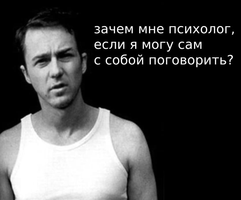 – Был у меня опыт общения с психологом женщиной. Ведёт себя как женщина, но мы с ней больше трхались, чем общались.