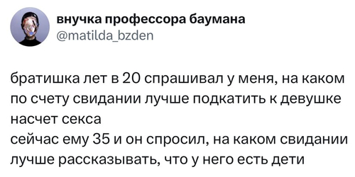 — Обычно, когда мы с приятелем выходим "в поле" пикапить и знакомиться с девушками, некрасивая девушка достаётся ему.