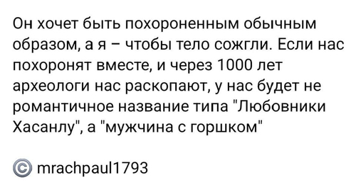 В какой-то момент, кладбищенскому сторожу Василию надоело отвечать на вопрос своих приятелей: "Где ты откапываешь таких стрёмных баб!?"
