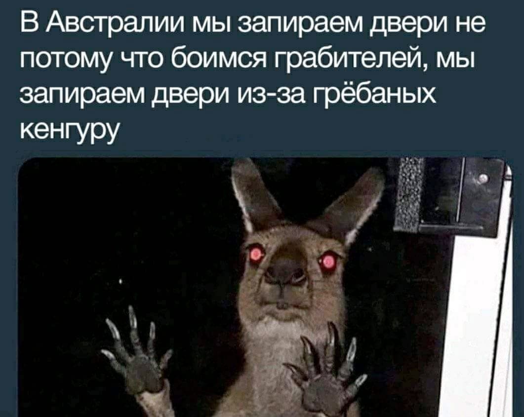 Мечтала побывать в Австралии. И вот мечта сбылась — приехала на целых два месяца. Купаться в океане нельзя — ядовитые медузы; балкон открывать нельзя — налетят чайки и прочие попугаи; окна открывать нельзя — заползёт такая восьмикрылая шестиногая х*йня, что ты сдашь ей квартиру бесплатно. Коалы, кенгуру и всякие тюлени адски воняют, хоть и красивые. За месяц я поняла, почему в Австралии чёрный кот — к удаче. Потому что кот это самое безобидное, что можно встретить в Австралии.