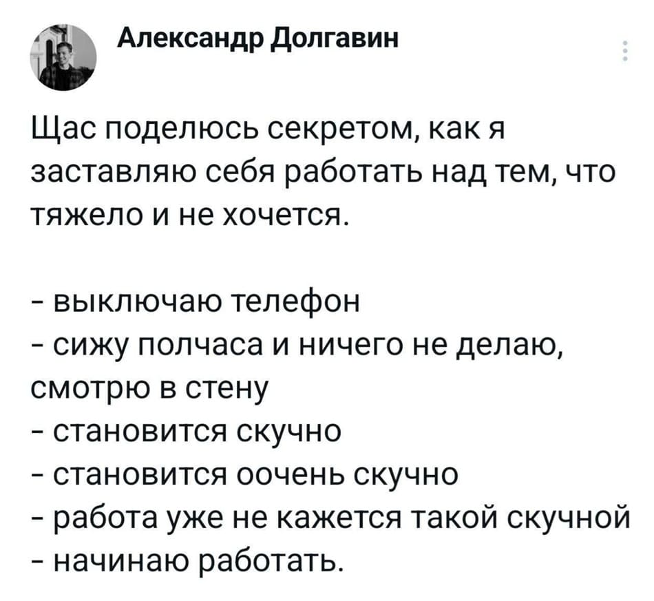 Как показывает жизненный опыт: рабочий день проходит куда быстрее, если работать.