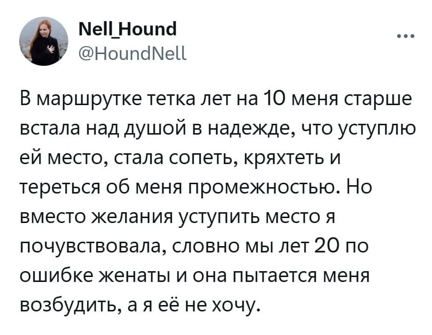 Ехал в маршрутке. На остановке зашла красивая девушка. Вот, думаю — какая она классная. И тут бабки, сидящие рядом со мной, начали её обсуждать.