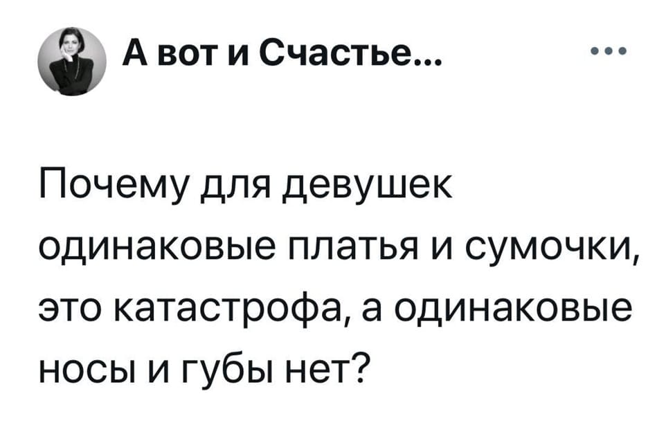 Абсолютно одинаковые действия приводят к абсолютно разным результатам. Например, если умоется мужчина, он выглядит лучше. А если умоется женщина?