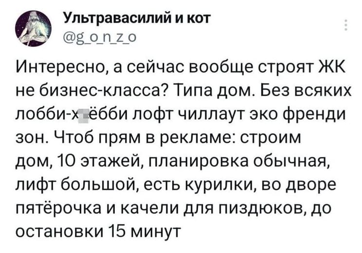 — Пришли каменщики, выкладывать стены, сказали, что фундамент заливали п*дорасы. Кровельщики сказали, что стены выкладывали п*дорасы. Штукатуры сказали, что кладку делали п*дорасы и так далее. Выходит дом построили одни п*дорасы!